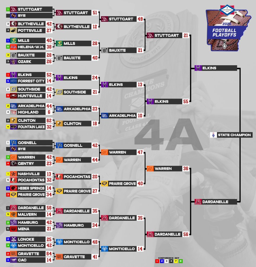 4-4A: Dover (0-10), Lamar (4-6), Mena (6-5), Pottsville (6-5), Waldron (1-9)