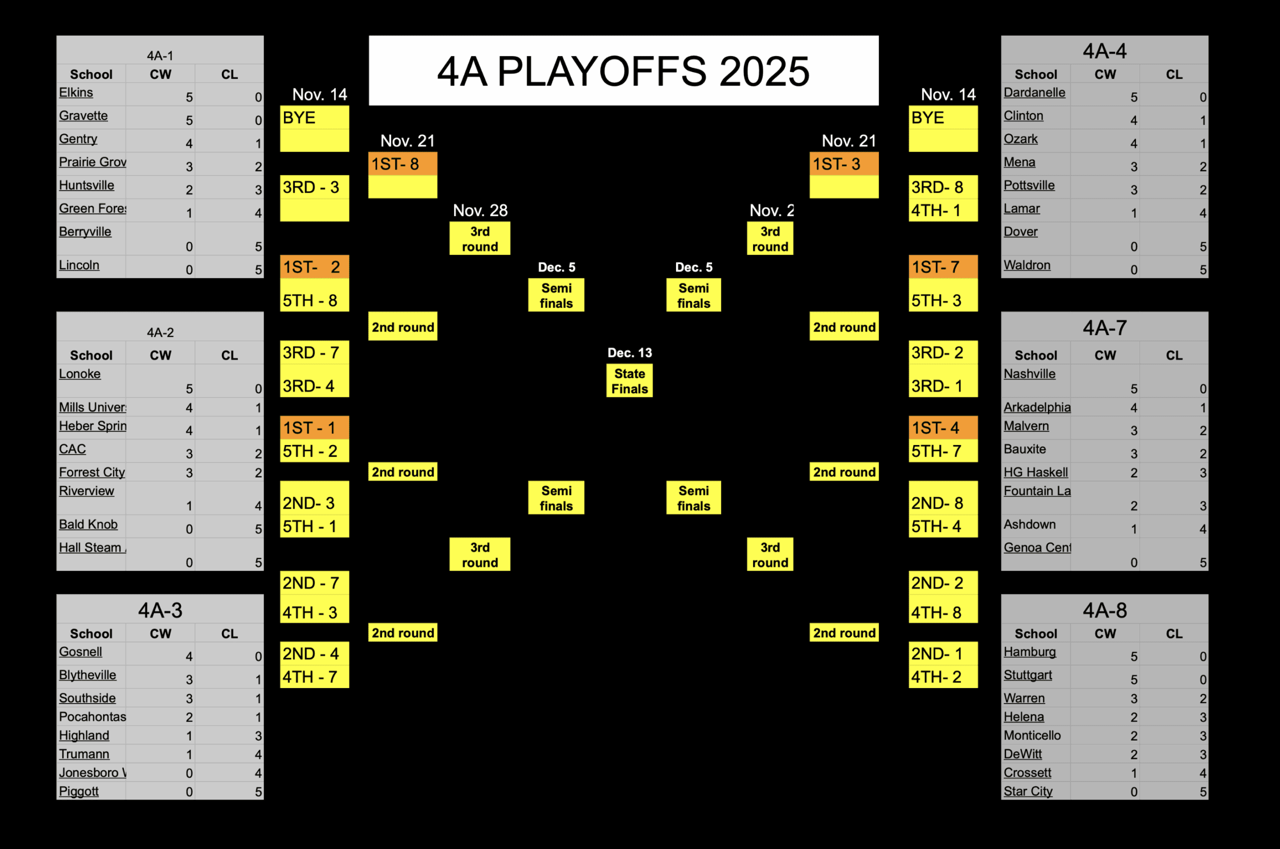 Playoff Brackets and Week 8 Standings